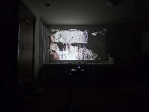 Honestly, i’m surprised, that little thing gets 120 inches!! Good quality, built-in android tv, just downloaded chrome on it, twitch, etc. Everything. Also can mirror from iphone/android. Excellent investment 1000% worth!
