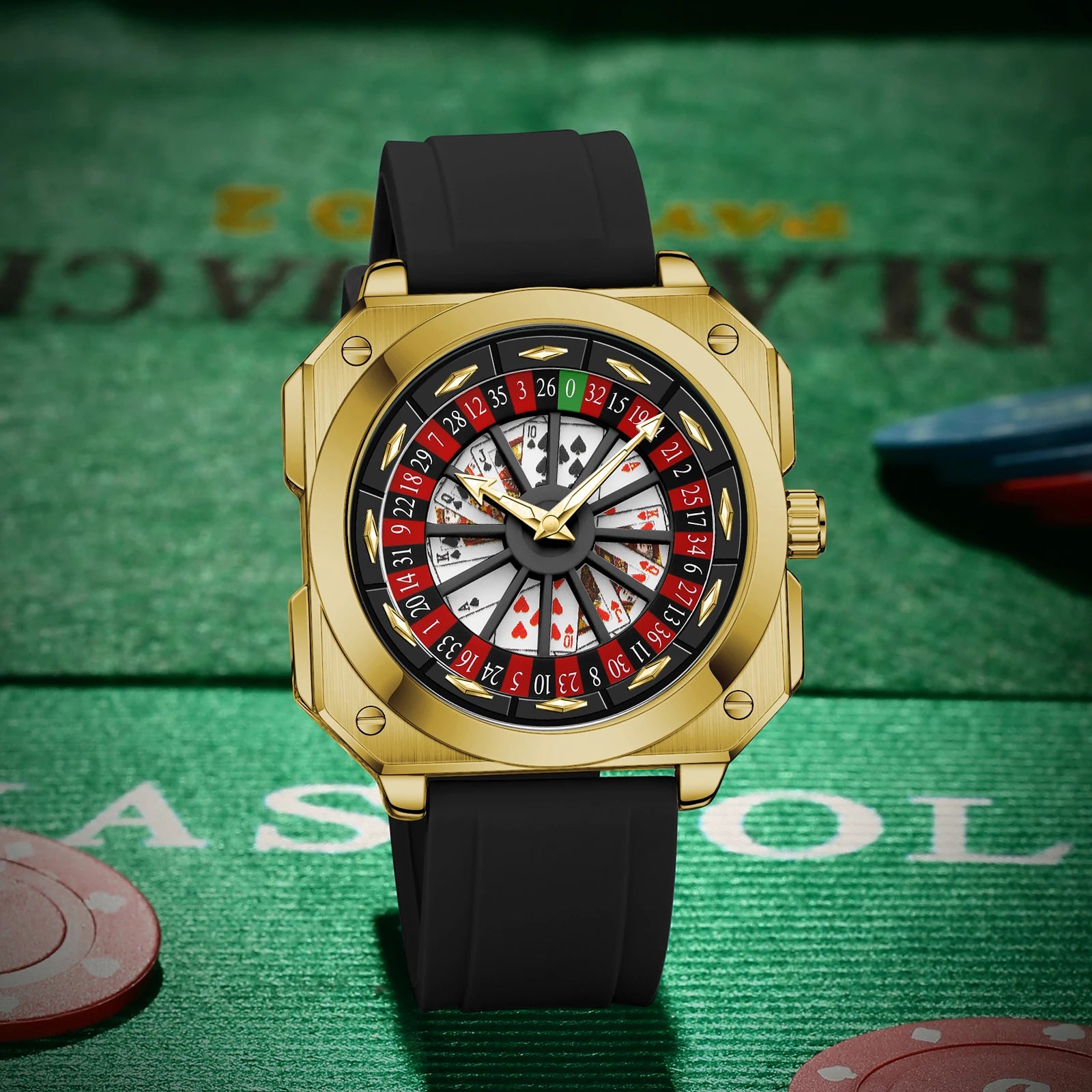 Brand Quartz Movement Men Watch 42mm Square Silver Black Silicone Clock Creative Rotating Compass Military Men Watch